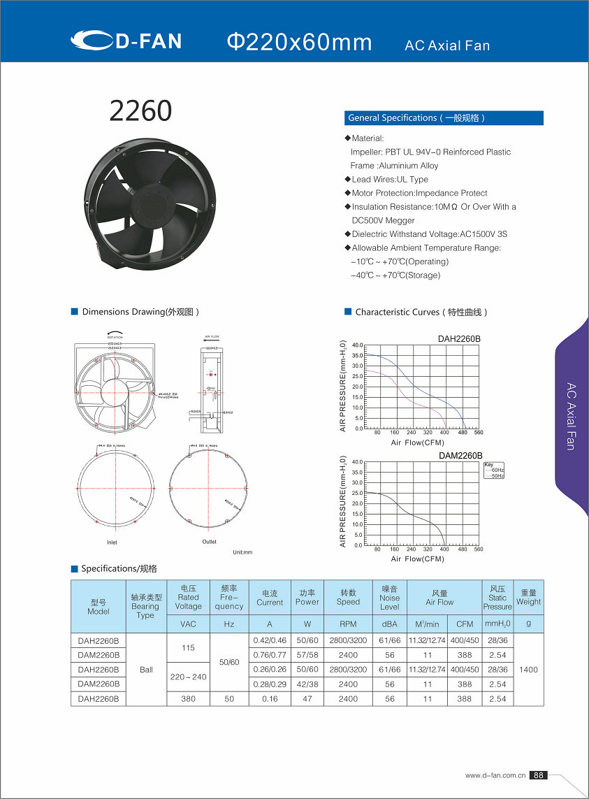 Your location: Home > Product center > AC Axial Fan > AC Axial Fan-2260